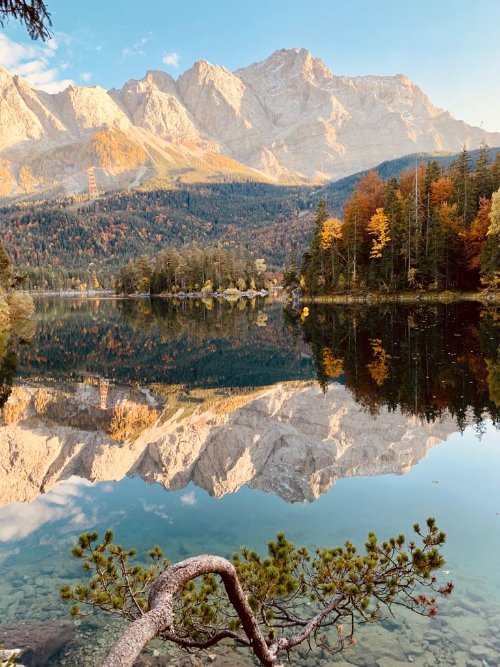 Rund um die Zugspitze findest du eine herrliche Region, in der man ausgezeichnet Urlaub mit Hund machen kann. Und ich kann dir versprechen: im goldenen Oktober ist es hier besonders schön. Wir haben eine sonnige Oktober-Woche in Garmisch-Partenkirchen verbracht und dort einen traumhaften Indian Summer erlebt. Und natürlich liegt da auch ein Besuch des Eibsees nah. Übrigens: Auch wenn hier die Hölle los sein kann, lohnt sich der Besuch. Die meisten Besucher laufen nämlich gar nicht all zu weit von den Besucherparkplätzen und ersten Fotospots weg. Wir waren nach rund 10-15 Minuten Wanderung (aber dem Parkplatz unbedingt gegen den Uhrzeiger laufen!) praktisch alleine unterwegs. Eindrucksvoll ist aber auch die nahegelegene Höllentalklamm. Und auch eine Fahrt auf das AlpspiX lohnt sich. Die Gondel bringt dich innerhalb von wenigen Minuten in eine wundervolle alpine Berglandschaft, die man auch im Herbst noch schneefrei erwandern kann.